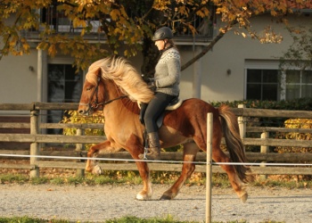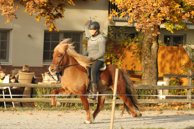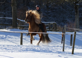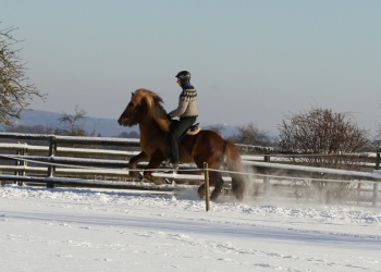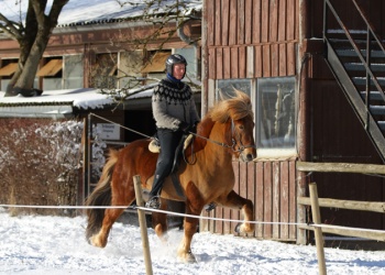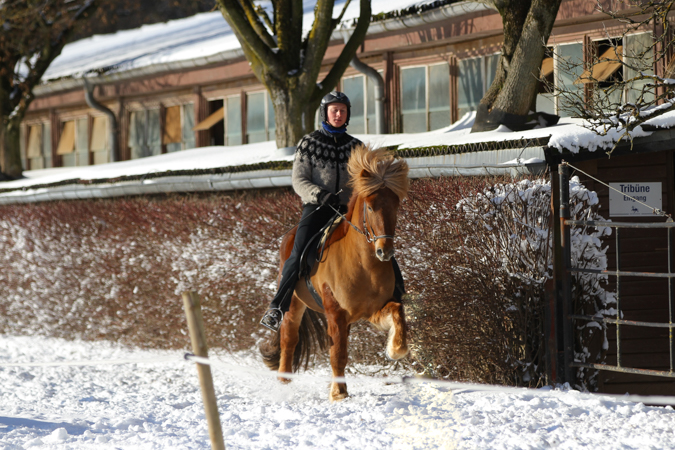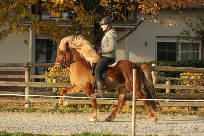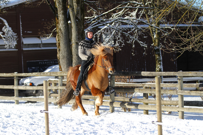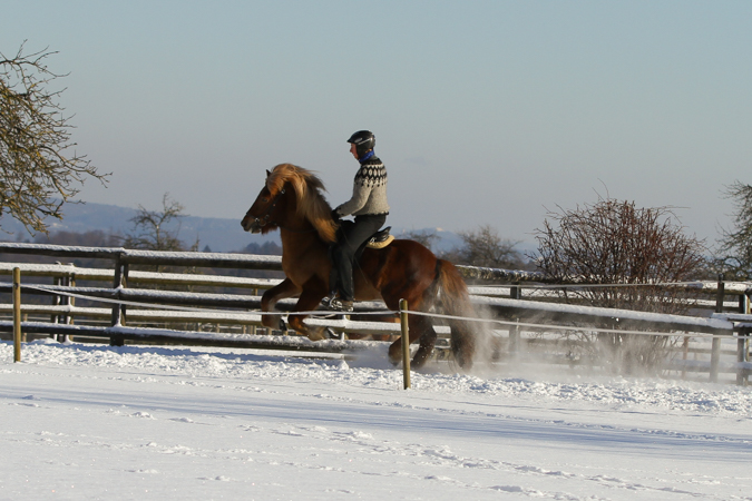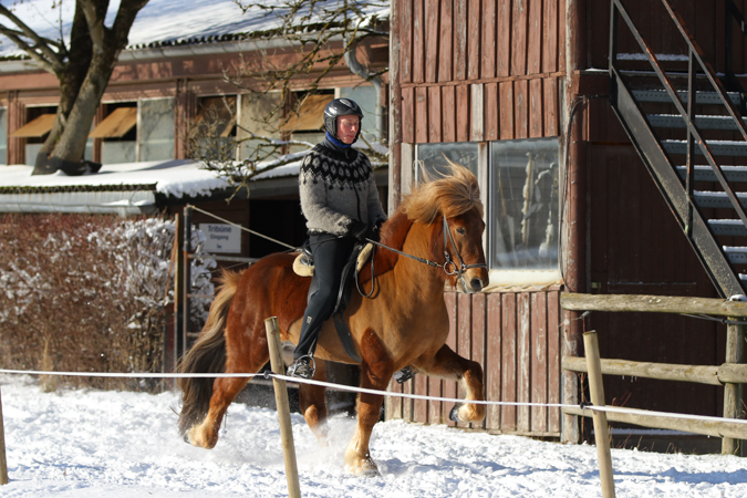 Sævar ist ein super Paket. Er ist eine tolle Erscheinung, weil er sehr groß und kräftig ist mit einer hohen Aufrichtung. In seiner Gangverteilung bringt er ganz viel natürlichen Tölt mit, den er in jedem Tempo halten kann. Unter dem Reiter wählt er immer Tölt. Trab und Galopp sind taktklar und bringen sehr viel Weite mit sich.